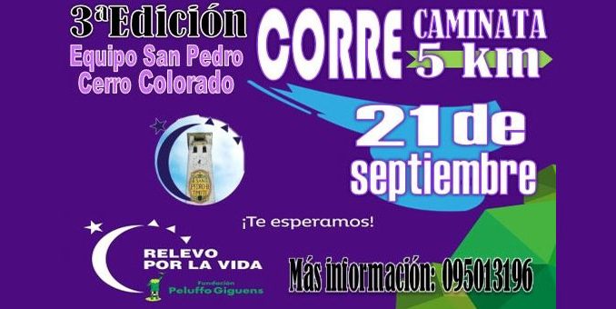 El 21 de setiembre se estará desarrollando la tercera edición de la carrera 5k organizada por el grupo San Pedro denominada «Relevo por la Vida» de la Fundación Peluffo Giguens.