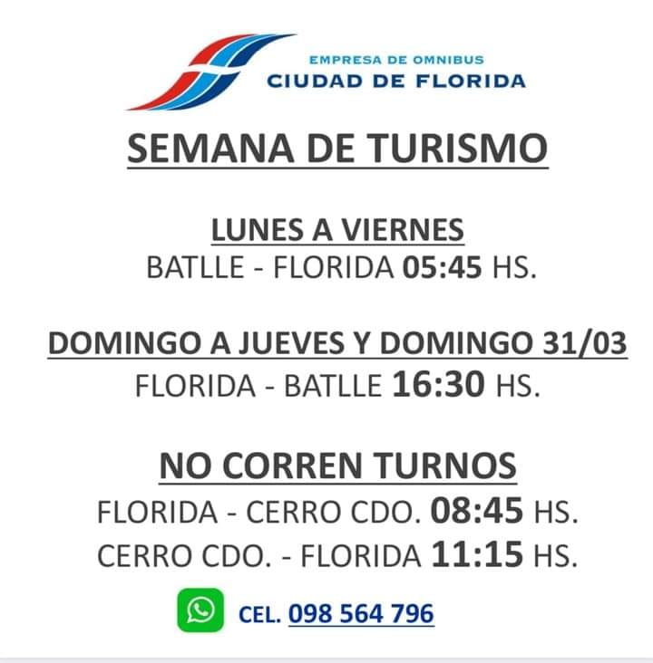 20.03.2024 Omnibus Ciudad de Florida informa cambios en horarios durante Semana de Turismo