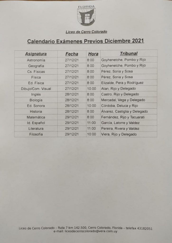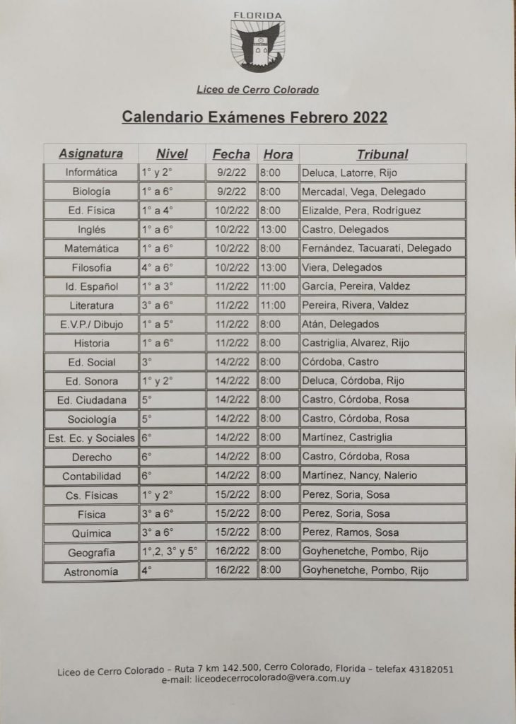 El Liceo de Cerro Colorado dio a conocer el calendario de exámenes para los períodos de diciembre 2021 y febrero 2022.