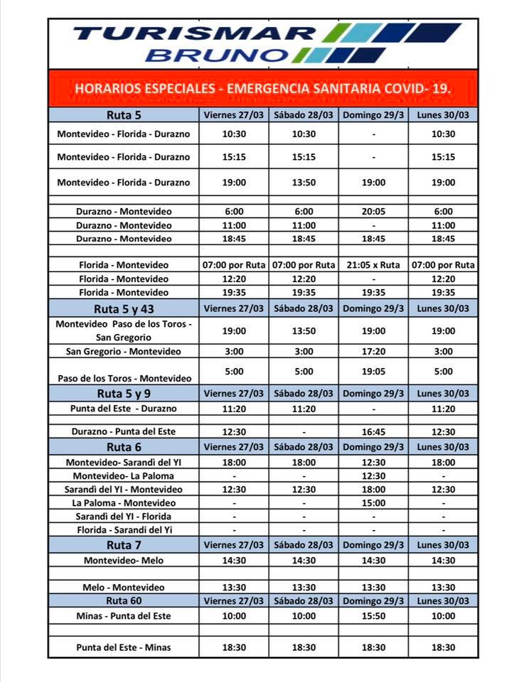 26.03.2020 Servicios de Turismar y Bruno para los próximos días 26 marzo, 2020 Carlos García Empresariales 0 Turismar puso en conocimiento los horarios especiales de sus servicios para los próximos días durante la emergencia sanitaria. Adjuntamos el afiche correspondiente: Cerro ColoradoTurismar